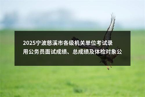 声明:专注 2025宁波慈溪市各级机关单位考试录用公务员面试成绩、总成绩及体检对象公告 相关岗位分析;专业指导面试技巧;保障就业成功概率。