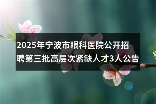声明:专注 2025年宁波市眼科医院公开招聘第三批高层次紧缺人才3人公告 相关岗位分析;专业指导面试技巧;保障就业成功概率。